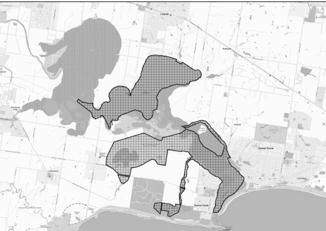 The whole of Lake Connewarre State Game Reserve, with the exception of Reedy Lake and Hospital Swamp, located in the City of Greater Geelong, north of Barwon Heads.